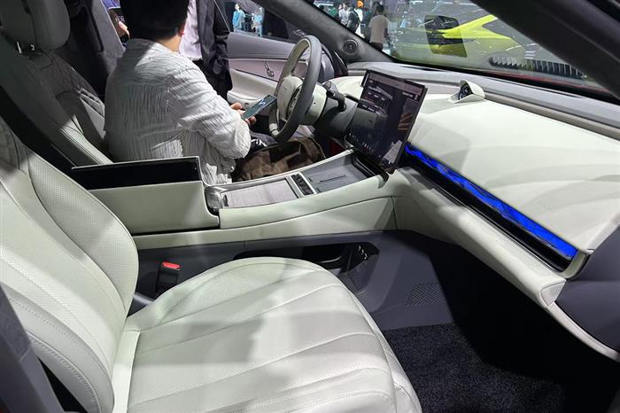 尾部造型通过能量晶体贯穿尾灯与双层空气动力学套件形成视觉焦点,配合立体浮雕式扩散器设计,将风阻系数优化至0.205Cd。车身三维尺寸保持4945×1978×1467mm的旗舰级规格,3000mm超长轴距营造行政级座舱空间。