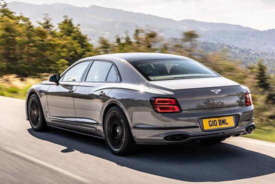 车尾同车头一样低矮宽大,两侧类似“吕”字的尾灯辨识度较高,同时下方还将采用双边共四出的排气布局。另外,飞驰S将提供22英寸双五辐式轮圈可选。