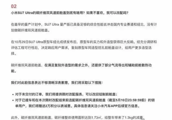 从小米SU7撞击护栏后自燃带来的安全隐忧,到NOA智能辅助驾驶系统过度宣传的质疑;从SU7 Ultra原定1548匹马力被限制至900匹引发的性能争议,到售价4.2万元的碳纤维前舱盖被指散热设计缺陷;近期甚至开始有不少车主反映小米SU7大灯外框和翼子板翘边……小米汽车正经历一场从技术到品控的全方位信任危机。