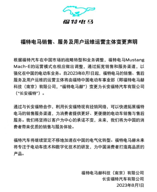 近日,福特汽车在中国市场的电动化发展有所改变。福特方面决定“放手”对电马的直营,电马归到在华合资公司长安福特手中。