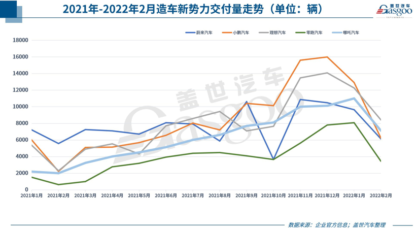 小鹏汽车也存在零部件供应紧张的问题。据悉,2月下旬,有部分小鹏P5车主的订单无法按期交付,小鹏汽车回应称,这一情况主要由磷酸铁锂电池等主要零部件供给极度紧张所致。当然于小鹏汽车而言,1月底至2月春节假期期间肇庆生产基地进行技术改造(2月中全面恢复生产)也对该月销量产生了一定影响。