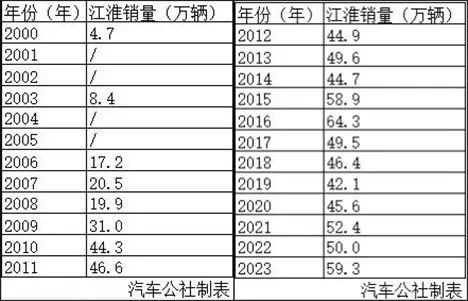 2012年,安进从左延安手中高位接盘,那一年江淮汽车年销量为44.9万辆,如果左延安时期销量增长的总体趋势能得以延续,那么江淮突破年销50万辆关卡的日子便不会远。